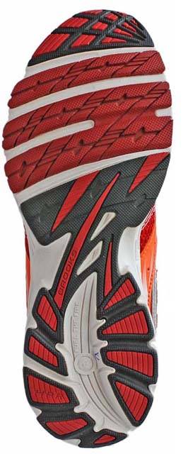 2. "Информативная" промежуточная и внешняя подошва из RevLite с хорошо подобранным соотношением гибкости и упругости, при которых фаза переката с пятки на носок (с середины стопы на носок) отзывчива без потери требуемой жесткости при отталкивании.