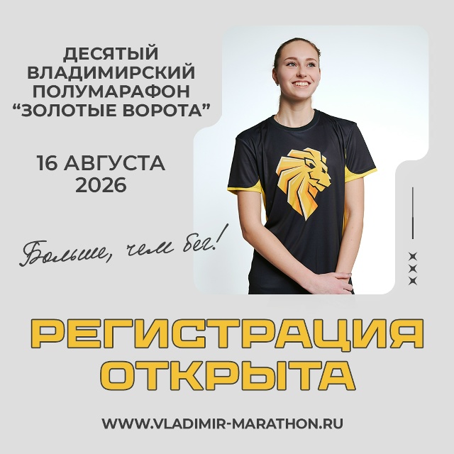 - 21,1 км — продемонстрировать всю свою силу воли на Владимирской трассе! Маршрут полумарафона проходит по историческому центру среди памятников архитектуры города Владимира. Регистрация: vladimir-marathon.ru